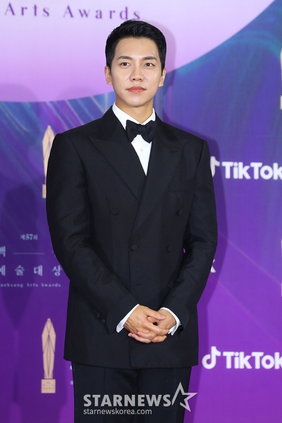 가수 겸 배우 이승기가 13일 오후 경기도 고양시 일산 킨텍스에서 열린 '제57회 백상예술대상' 시상식 레드카펫 행사에 참석해 포즈를 취하고 있다. TV·영화·연극을 아우르는 종합예술시상식인 '제57회 백상예술대상'은 오후 9시부터 JTBC·JTBC2·JTBC4에서 동시에 중계되며 틱톡에서도 글로벌 생중계된다. / 사진제공 = 백상예술대상 사무국 /사진=김창현 기자 chmt@