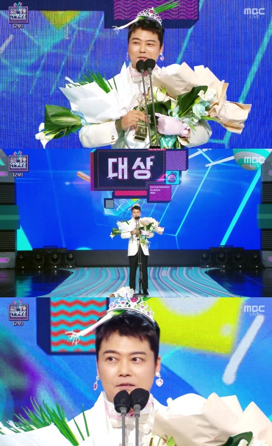이날 여자 최우수상은 '라디오스타'의 안영미에게 돌아갔다. 안영미는 코로나19 확진으로 시상식에 참석하지 못했다. 이에 소속사 대표인 송은이가 대리 수상에 나섰고, 안영미와 전화 연결을 했다.