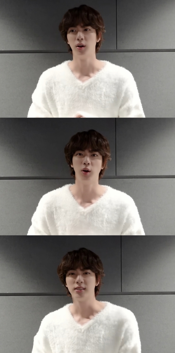 진은 "신년인사에 앞서 작년은 잘 보내셨는지 궁금하고요. 잘 보내셨으리라 믿습니다. 우리 아미 여러분들은 굉장히 모든 일을 다 잘하시는 분들이라고 알고 있거든요"라고 팬들에게 다정한 인사를 건냈다.