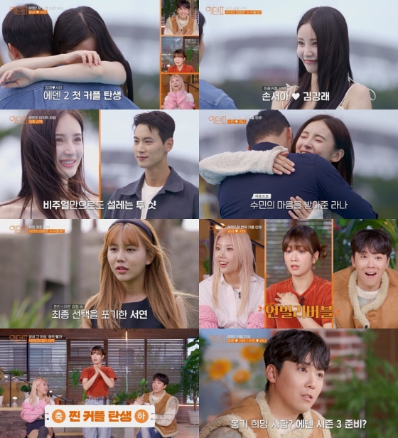 '에덴2' 김강래와 손서아, 김수민과 라나가 서로의 마음을 확인하며 최종 커플이 됐다. 이서연과 러브라인을 형성하던 조이건은 최종 선택에서 라나를 호명하는 반전으로 충격을 선사했다.