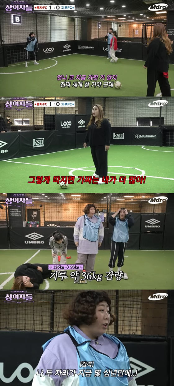 열정 가득했던 풋살은 동점으로 마무리됐다. 경기 후 신기루와 허안나는 체중계에 올라가 몸무게를 측정했다. 풋살 경기 전 79kg였던 허안나는 58kg, 126kg였던 신기루는 93kg를 기록했다.