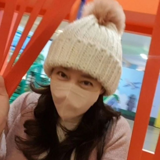 사진에는 이지현이 자녀들과 함께 어린이 놀이방을 찾은 모습이 담겨 있다.