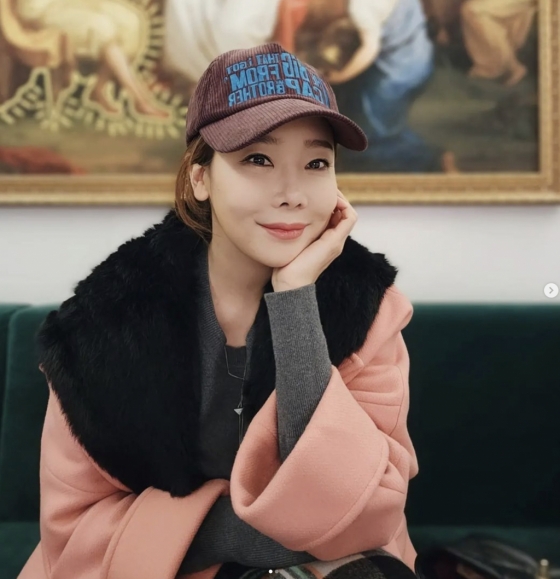 공개된 사진 속 소유진은 핑크색코트와 캡 모자를 쓰고 턱받침을 하며 동안 미모를 자랑했다.