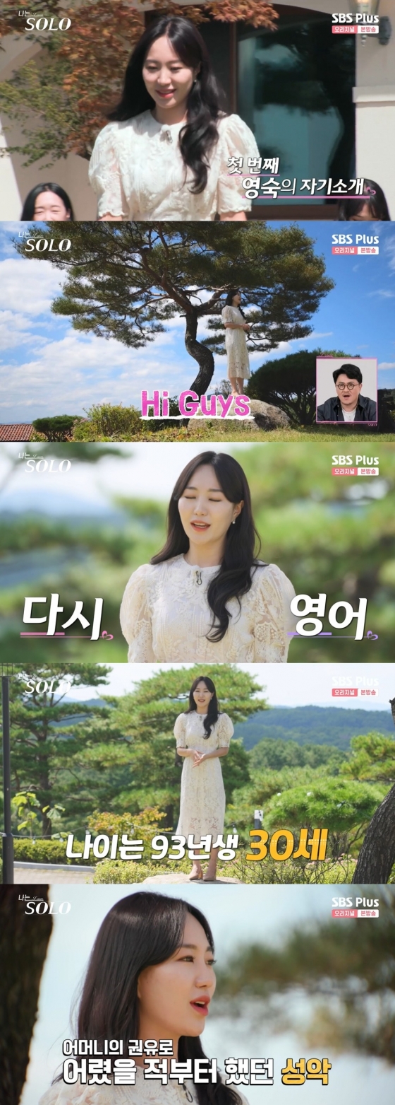 영숙은 "재학 시절 아르바이트를 할 수 있는 게 통역이었다. 무역 쪽 통역을 하면서 차에 대해 관심이 생겼고 도자에 매력에 빠졌다. 취미는 어머니 권유로 어릴 때부터 성악을 했다. 리더십이 있는 남성분이었으면 좋겠다"라고 취미와 취향을 밝혔다.