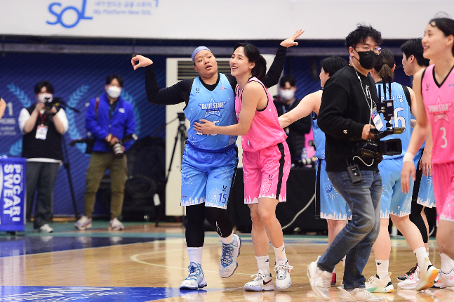 경기 중엔 이색 이벤트도 이어졌다. 김소니아의 남편인 이승준이 블루스타로 깜짝출전했다. 신지현의 유니폼을 입은 한 팬은 직접 코트에 들어서 핑크스타의 비호를 받으며 신지현의 2점을 위한 레이업을 성공했다. 3쿼터 중간엔 진안과 강이슬이 유니폼을 맞바꿔 입었다.
