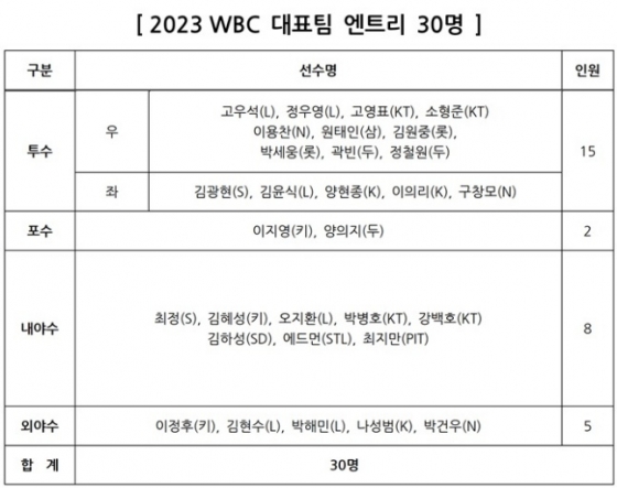 한편 '야구의 월드컵'으로 불리는 WBC는 오는 3월 8일 개막한다. 이번 WBC는 2017년 4회 대회 이후 코로나19 팬데믹으로 인해 6년 만에 다시 열리게 됐다. 한국은 호주, 일본, 체코, 중국과 1라운드 B조에 편성됐다.