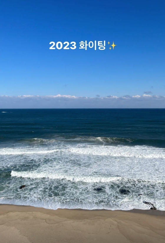 이어 아옳이는 푸른 해변을 배경으로 찍은 사진과 함께 "2023 화이팅"이라고 덧붙였다.