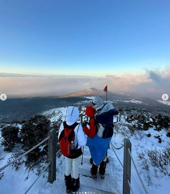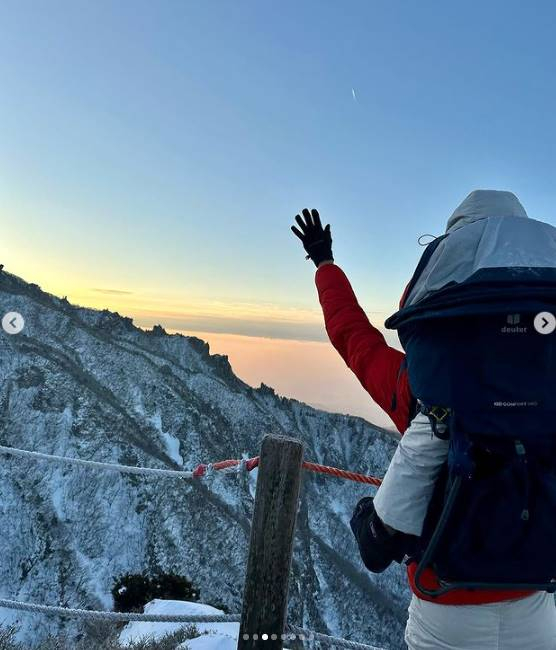 배우 이시영이 아이를 업고 한라산에 오른 사진을 추가로 공개했다.