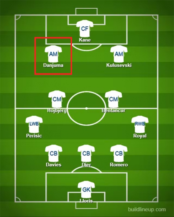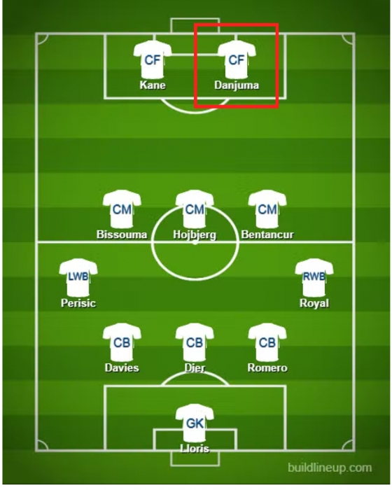 그러면서 단주마가 합류할 경우 토트넘의 예상 선발 라인업을 공개했는데, 매체는 3-4-3과 3-5-2 두 전형 모두 손흥민 대신 단주마의 이름을 넣었다. 3-4-3 전형에선 해리 케인과 함께 단주마, 데얀 쿨루셉스키가 양 측면 공격진을 구축하고, 3-5-2 전형에서도 케인의 투톱 파트너로 단주마가 설 것이라는 전망이다.