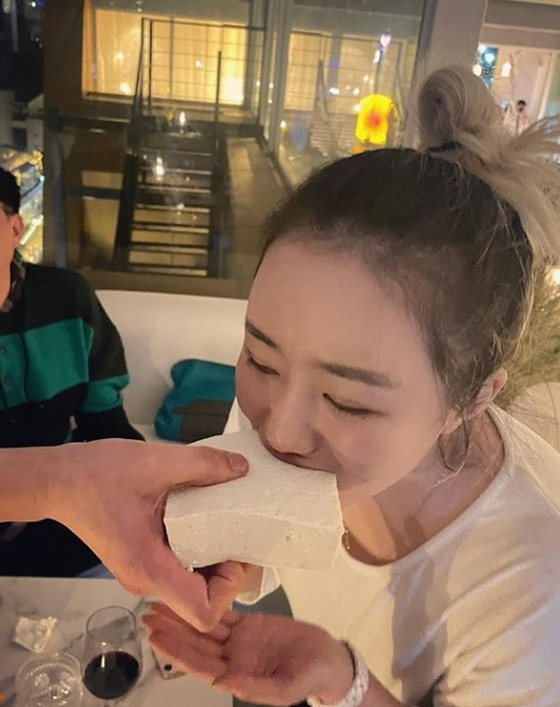 함께 공개된 사진에는 지인이 건넨 두부를 먹고 있는 엄상미의 모습이 담겼다. 또한 엄상미는 선물로 받은 꽃다발과 두부 한 팩도 공개했다.