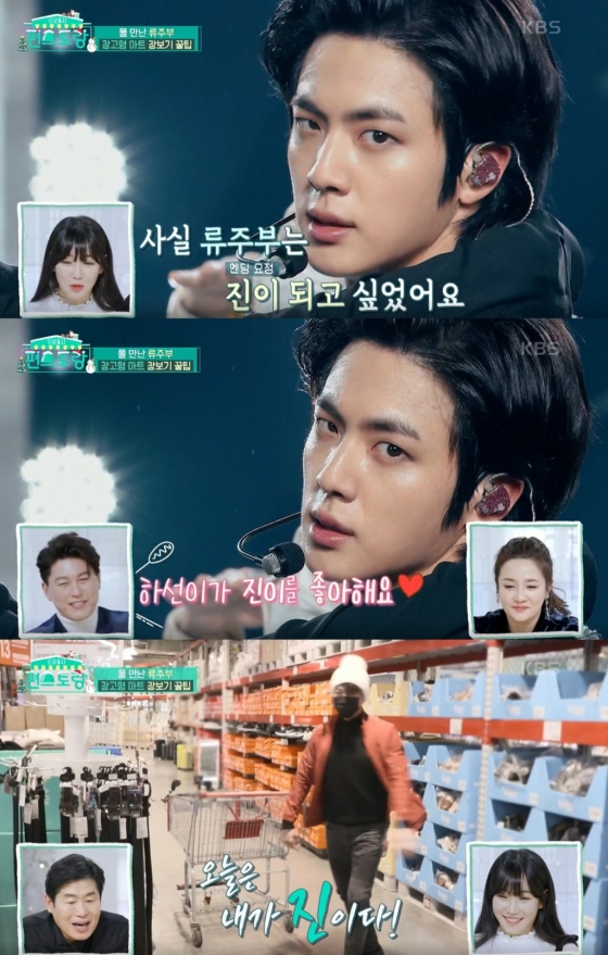 류수영은 시장조사를 하던 중 방탄소년단의 사진이 프린트된 음료 코너를 발견 후 발길을 멈췄다. 류수영은 "방탄!"이라고 외친 후 홀린 듯이 손길을 뻗어 진이 프린트된 음료 2개를 바구니에 넣었다.