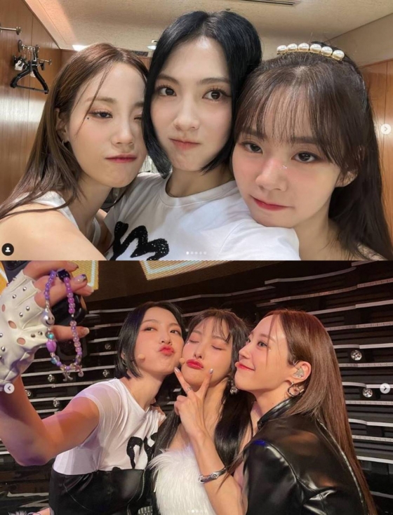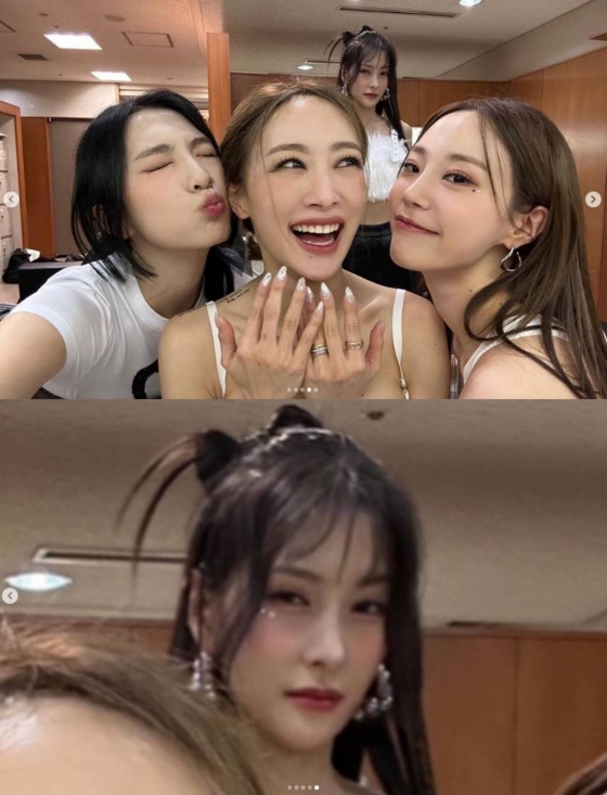 사진 속에는 강지영이 멤버 한승연과 허영지 사이에 안겨 장난기 섞인 표정을 짓고 있었다. 다른 사진에선 강지영이 허영지와 함께 박규리를 사이에 두고 귀여운 쓰리샷을 선보였다.