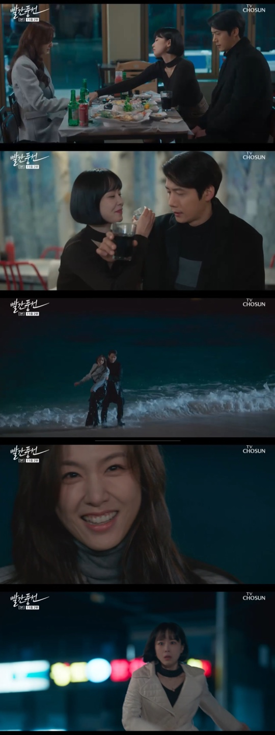 28일 방송된 TV조선 토일드라마 '빨간 풍선' 11회에서는 밤바다가 보고 싶다는 조은강(서지혜 분)의 문자를 받은 한바다(홍수현 분)가 고차원(이상우 분)을 데리고 셋이 함께 바다 근처에 놀 러가는 장면이 그려졌다.