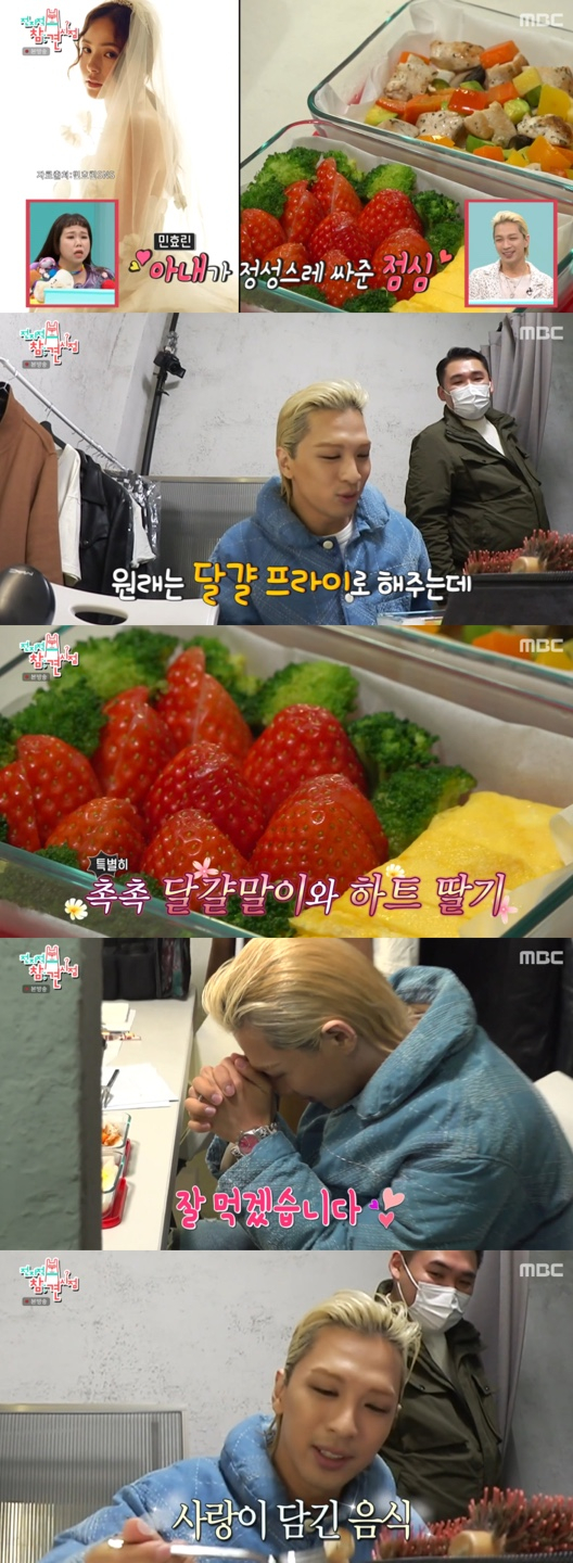 '전참시' 가수 태양이 아내 민효린이 싸준 도시락을 공개했다.