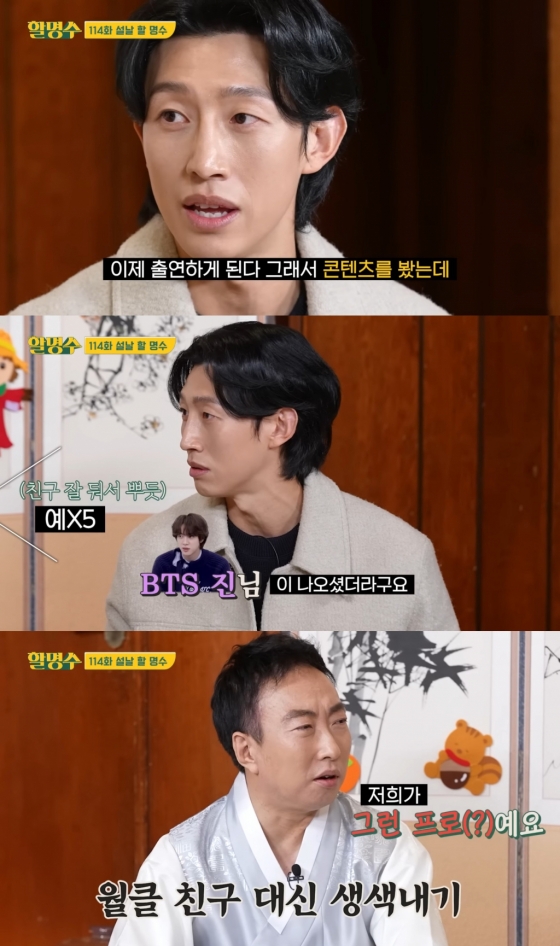 지난 주 할명수 114화에 등장한 배우 강기영이 "출연 전에 콘텐츠를 봤는데 BTS 진님이 나오셨더라구요"라고 말하자 박명수는 "저희가 그런 프로예요"라며 뿌듯함을 표현했다. 이때 할명수에는 '친구 잘 둬서 뿌듯', '월클 친구 대신 생색내기'라는 자막이 나가며 진을 향한 할명수 제작진과 박명수의 자부심이 드러났다.