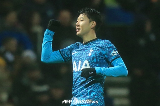 토트넘 손흥민이 29일 프레스턴과의 FA컵 4라운드에서 득점에 성공한 뒤 기뻐하고 있다. /AFPBBNews=뉴스1