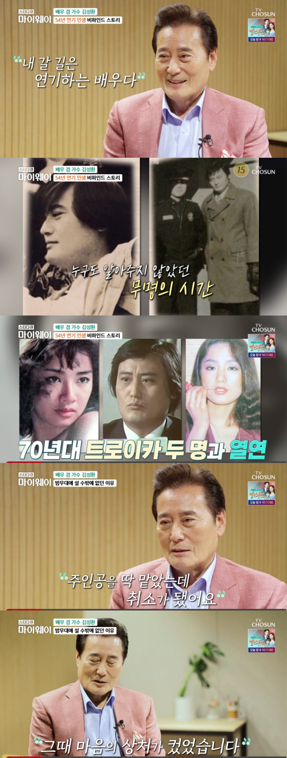 29일 오후 방송된 TV조선 예능 프로그램 '스타다큐 마이웨이'에서는 54년 차 베테랑 배우이자 가수 김성환의 인생이 공개됐다.