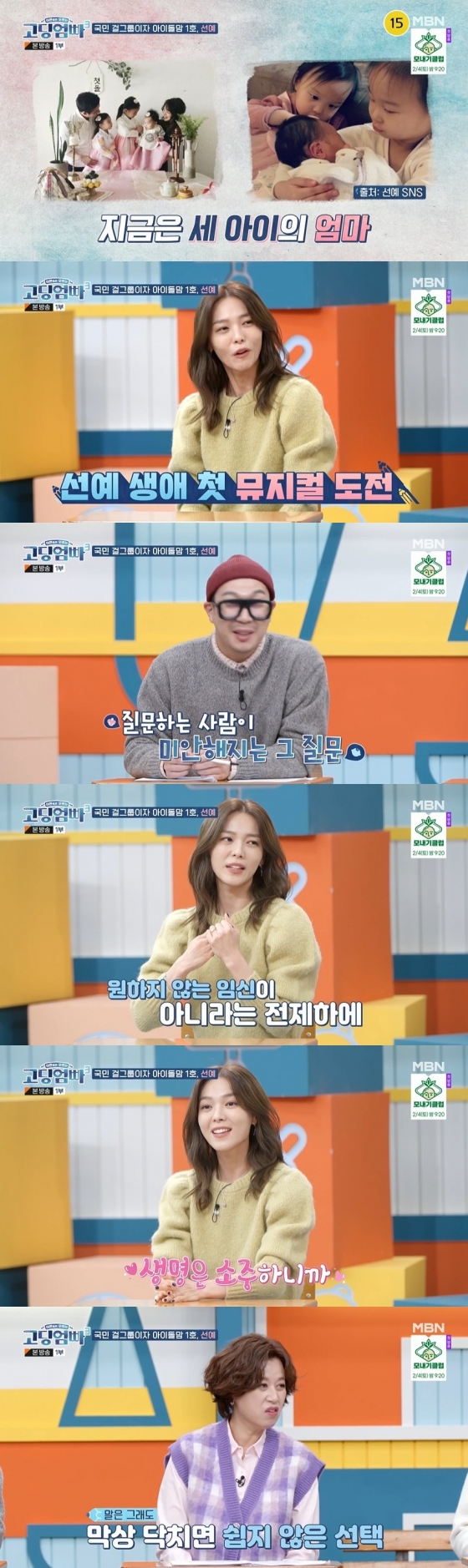 선예는 "솔직히 부모의 마음으로는 당황스럽긴 할 것이다. 하지만 원하지 않는 사고로 임신이 된 것이 아니라면 생명은 소중하니까 서포트를 해줘야 한다고 생각한다"고 소신 발언을 했다. 이어 "부모로서 도와줄 수 있는 부분은 도와주고 같이 헤쳐 나가야 할 것 같다"고 말했다.