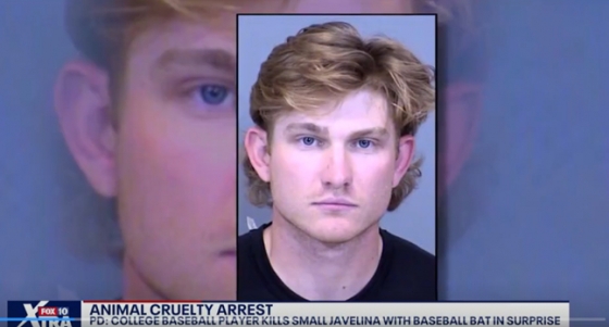매체에 따르면 애리조나주 오타와 대학 2학년생인 로저 알렉산더(20)는 지난달 18일(현지시간) 서프라이즈시 인근 도로에서 마주친 '하발리나(Javelina)'로 불리는 야생돼지에 자동차 전조등을 비춰 움직이지 못하게 한 뒤 차에 보관 중이던 야구 배트를 휘둘러 죽였다. 알렉산더는 이 장면을 모두 비디오로 녹화했고, 심지어 카메라를 보고 웃고 즐기는 모습까지 보였다.
