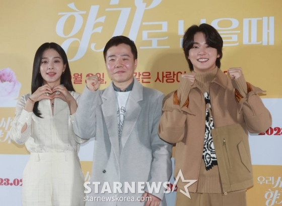 2일 서울시 광진구 롯데시네마 건대입구에서 영화 '우리 사랑이 향기로 남을 때'의 언론배급시사회가 개최됐다. 이 자리에는 임성용 감독을 비롯해 배우 윤시윤, 설인아가 출연해 다양한 이야기를 나눴다.