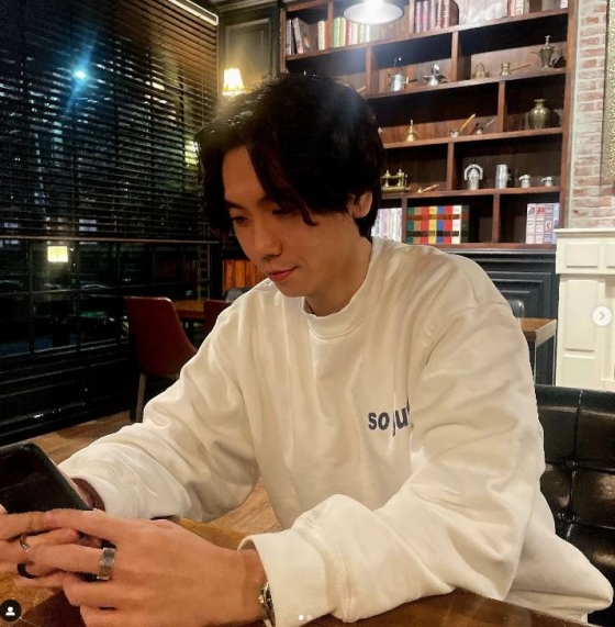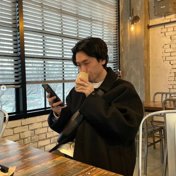 사진 속 최동환은 카페에 앉아 휴대폰을 유심히 바라보며 미소짓고 있었다. 그의 힙한 패션이 눈길을 끌었다.