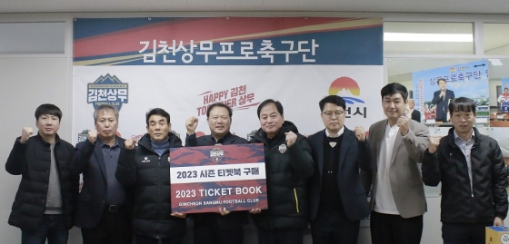 김천상무프로축구단이 1일, 김천상무 대표이사실에서 김천시청 스포츠산업과의 티켓북 구매 행사를 열었다. 이날 행사에는 김천상무 배낙호 대표이사, 최한동 후원회장, 김천시청 이상진 스포츠산업과장 등이 참석했다. 김천시청 스포츠산업과는 시청 실과소들 중 처음으로 2023 시즌 김천상무 티켓북을 구매하며 김천상무의 K리그1 승격을 응원했다.