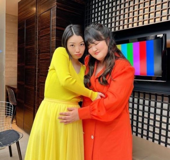 공개된 사진에는 이국주와 안영미가 서로의 배를 쓰다듬으며 다정한 분위기를 자아내는 모습이 담겼다.