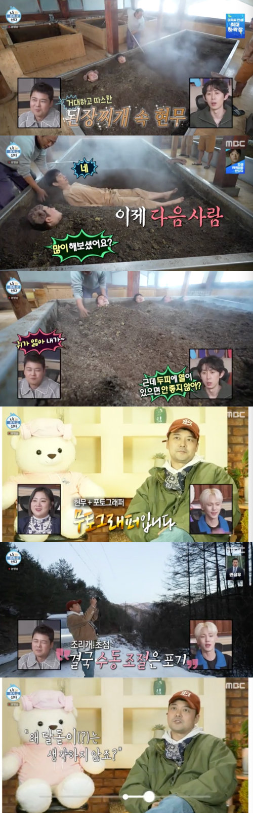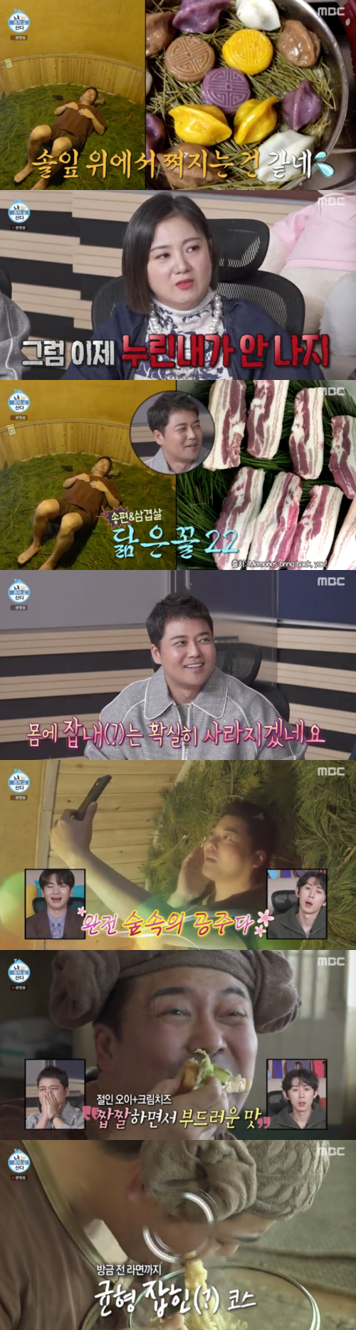 이날 전현무는 영하의 날씨를 뚫고 찜질방을 찾았다. 먼저 솔잎방에 들어간 전현무는 "후끈후끈 올라오네. 너무 좋다"라며 만족스러워했고, 코쿤은 "송편인 거 아냐"라고 말해 웃음을 자아냈다. 이어 기안84는 "솔잎 향이 형 몸에 배는 거잖아"라고 말했고, 이에 박나래는 "그러면 이제 누린내, 잡내가 안 나지"라고 답해 좌중을 폭소케했다. 이어 기안 84는 "몸에 잡내는 확실히 사라지겠다"라고 끄덕였다.