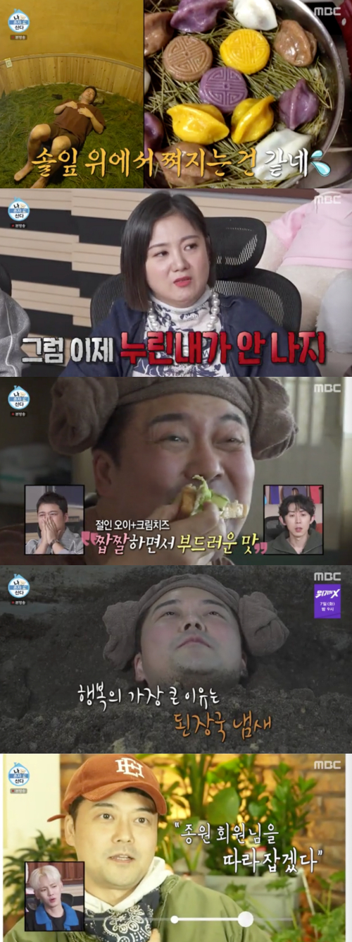 이날 전현무는 영하의 날씨를 뚫고 찜질방을 찾았다. 먼저 솔잎방에 들어간 전현무는 "후끈후끈 올라오네. 너무 좋다"라며 만족스러워했고, 코쿤은 "송편인 거 아냐"라고 말해 웃음을 자아냈다. 이어 기안84는 "솔잎 향이 형 몸에 배는 거잖아"라고 말했고, 이에 박나래는 "그러면 이제 누린내, 잡내가 안 나지"라고 답해 좌중을 폭소케했다.
