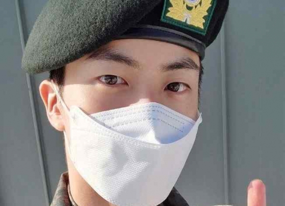 진은 지난 1월 18일 신병교육대에서 열린 수료식에서는 수료생들을 대표해 지휘자로 활약, 남다른 발성과 '칼각'으로 화제를 모은 바 있다.
