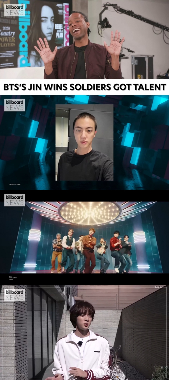 빌보드는 지난 2월 2일 공식 SNS 계정과 유튜브를 통해 공개한 빌보드 뉴스(Billboard News) 영상에서 '방탄소년단 진, 군 장기자랑에서 우승했다'라는 타이틀로 조명했다.