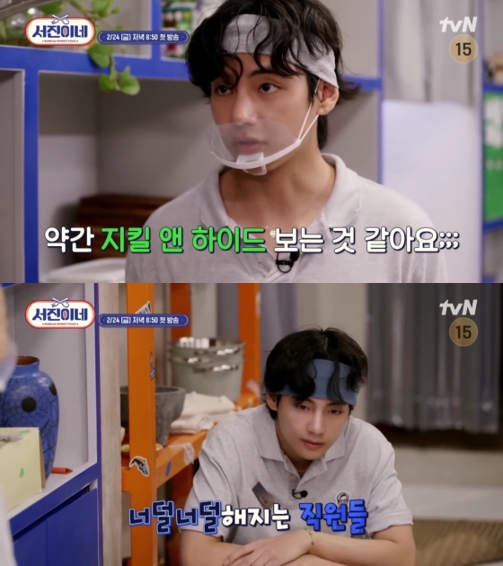 방탄소년단(BTS) 뷔가 '서진이네' 막내 인턴으로서 사장 이서진의 두 얼굴과 몰려드는 손님으로 당황해 웃음을 안겼다.