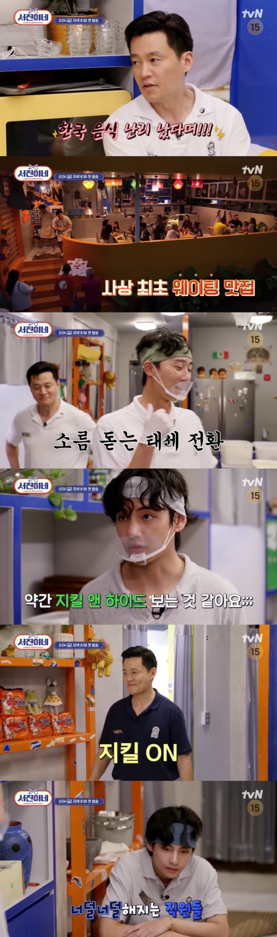 "서진이네"라고 함께 외치며 영상이 시작됐고, 박서준은 "우리 장사할 때 사람 많을 것 같아"라고 기대감을 내비쳤지만 텅 비어있는 식당의 모습이 이어졌다.