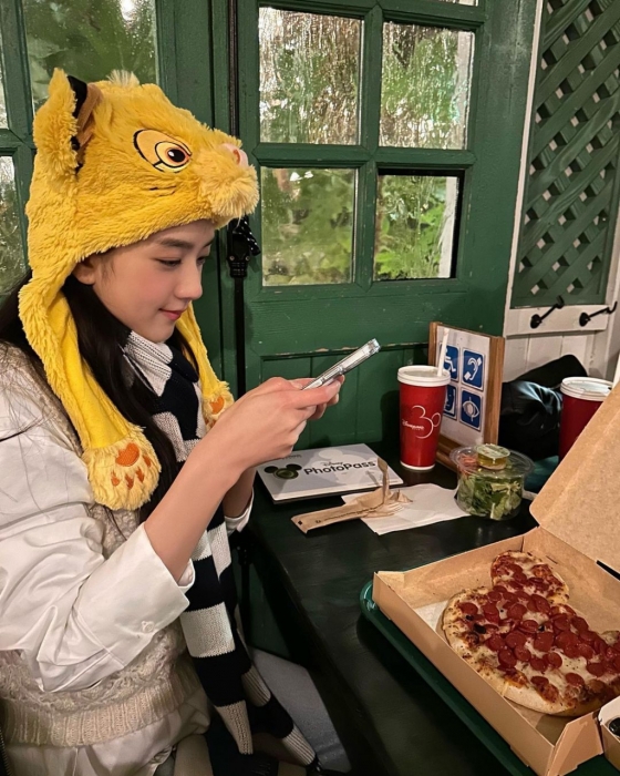 다른 사진들에서 지수는 파리 디즈니랜드에서 찍은 다양한 사진들을 보여주었다. 지수가 사자 모자를 쓰고 미키 모양의 피자를 찍는 모습이 포착됐다.