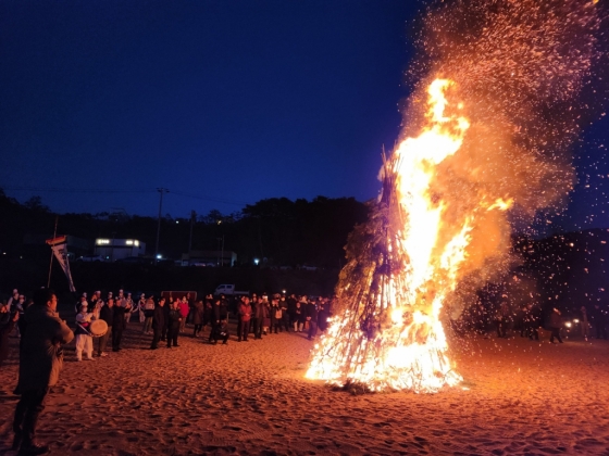 역시 이날 행사의 하이라이트는 불꽃을 피어올리는 달집태우기다. 백사장에 어두움이 깔리고 둥그런 보름달이 올라오면서 커다란 달집에 불을 지피면서 화려한 불꽃이 어두움을 밝힐 정도로 피어올랐다.