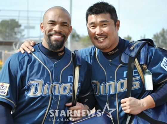 NC 소속으로 미국 스프링캠프에서 훈련한 테임즈(왼쪽)와 이호준(현 LG 코치)의 모습. /사진=이상희 통신원