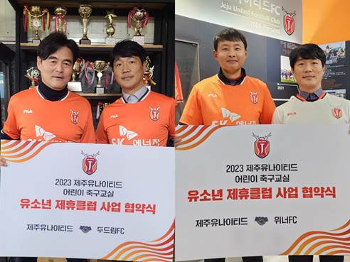 제휴 대상인 2개 유소년 축구클럽은 제주도내에서 유소년들의 취미 및 건강을 위해 운영 중인 두드림FC와 위너FC이다. 제주시 연동(두드림FC/단장 한국희), 서귀포시 대천동(위너FC/감독 최지운)을 각 각 기반으로 하는 2팀은 구단의 일원이 되어 유소년 제휴 클럽의 첫 시작을 함께한다.