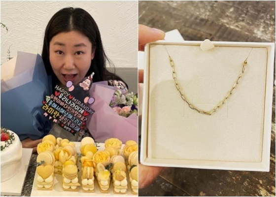 공개된 사진에는 라미란이 아들에게 받은 금팔찌가 담겨 있다. 심플하고 세련된 체인 디자인의 팔찌 디자인이 눈길을 끈다.