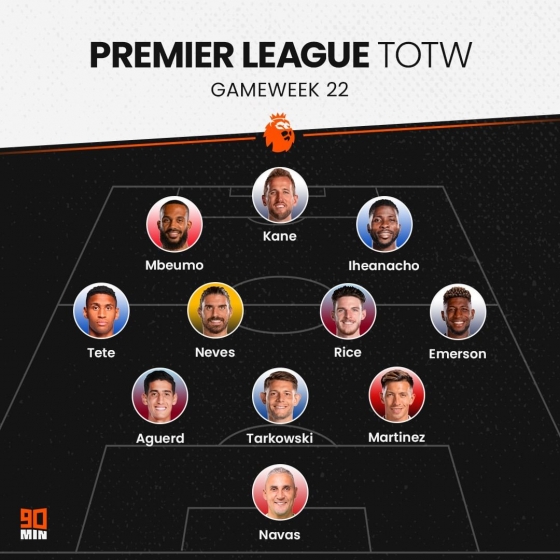 베스트 11은 해리 케인, 브라이언 음뵈모, 켈레치 이헤아나초; 테테, 후벵 네베스, 데클란 라이스, 에메르송 로얄; 나이프 아구에르드, 제임스 타코우스키, 리산드로 마르티네스; 케일러 나바스가 선정됐다.