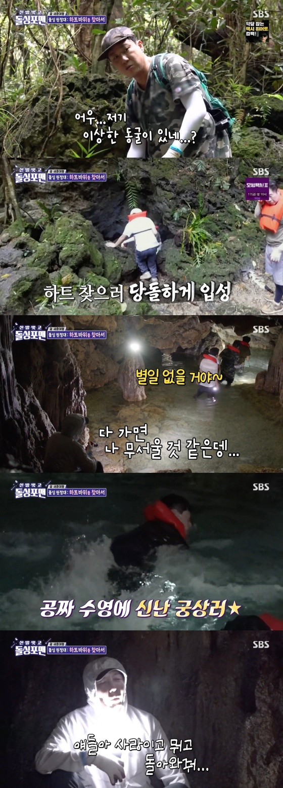 이날 멤버들은 하트 바위를 찾아 나섰다. 이상민은 "저기 동굴 살짝 봤거든? 살벌하다"라며 겁을 먹었다. 김준호는 깊숙한 동굴에 "무서워"라며 뒤로 물러났다. 멤버들은 하트 바위를 찾기 위해 동굴 속으로 들어갔다. 탁재훈은 "인디아나 존스 아닙니까?"라며 신기해했다.