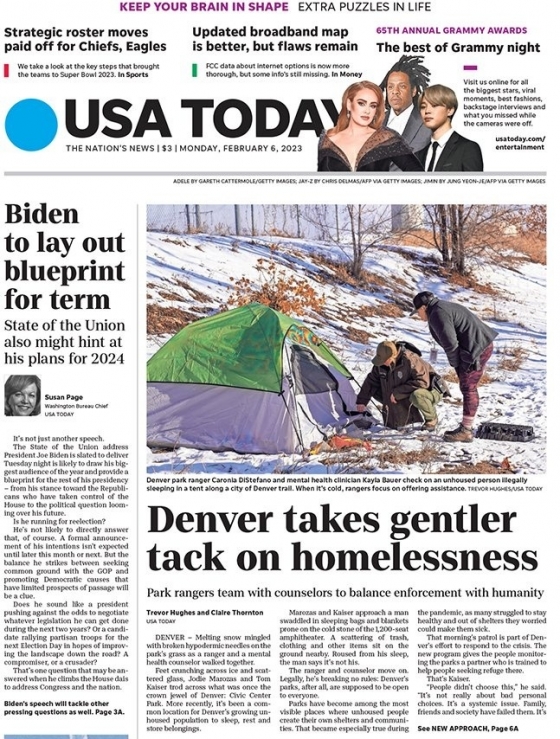 미국 일간지 USA 투데이(USA TODAY)는 제65회 그래미 어워즈 소식을 전하며 '이지 온 미'(Easy On Me)로 '베스트 팝 솔로 퍼포먼스(BEST POP SOLO PERFORMANCE)'상을 수상한 아델(Adele), 전설적인 래퍼 제이지(Jay-Z)와 함께 지민을 내세웠다.