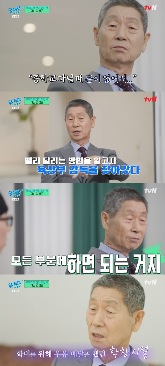 한편 김성근은 학비를 위해 새벽에 우유배달을 했다고 전했다. 김성근은 "우유배달하려면 새벽 4시에 나가야 했다. 힘들다고 생각하지 않았다. 배달을 하며 혼자 승부를 했다. 그러니까 즐거웠다. 그게 오히려 지금까지 살아왔을 때 도움이 되지 않았나 싶다"고 전했다.