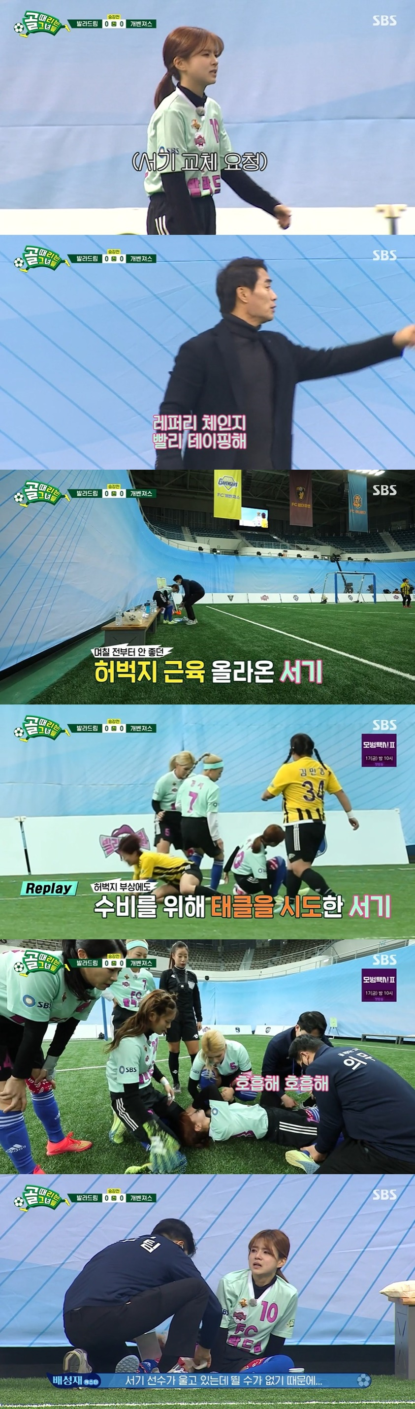 '골 때리는 그녀들' FC발라드림 서기가 허벅지 통증을 호소하며 선수 교체를 요청했다.