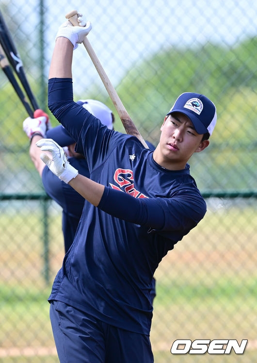 휘문고를 졸업하고 지난해 신인 드래프트에서 1라운드 전체 3순위로 롯데에 입단한 김민석은 '제2의 이정후(25·키움)'로 기대를 모으고 있다. 지난해 고교 3학년 시절 타율 0.544(68타수 37안타)로 이영민 타격상을 수상할 정도로 타격에 재능을 뽐냈다.