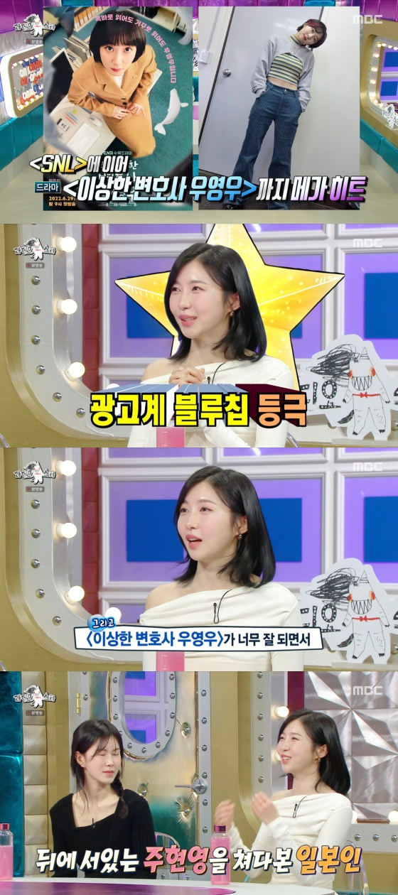 '라디오스타'에서 주현영이 '이상한 변호사 우영우'의 인기 덕에 광고를 많이 찍었다고 자랑했다.