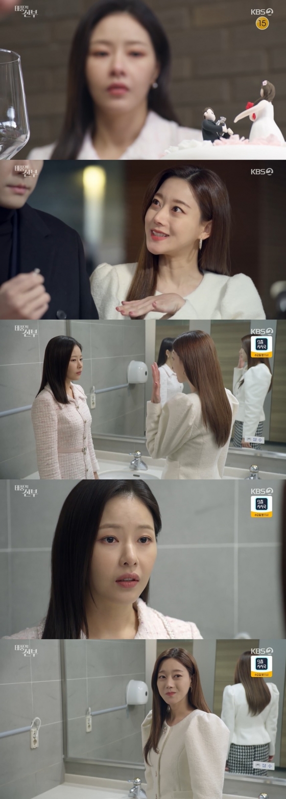 9일 오후 방송된 KBS 2TV 일일드라마 '태풍의 신부'에서는 윤산들(박윤재 분)과 르블랑 딸 강바다(오승아 분)의 약혼식을 지켜본 은서연(박하나 분)의 모습이 담겼다.