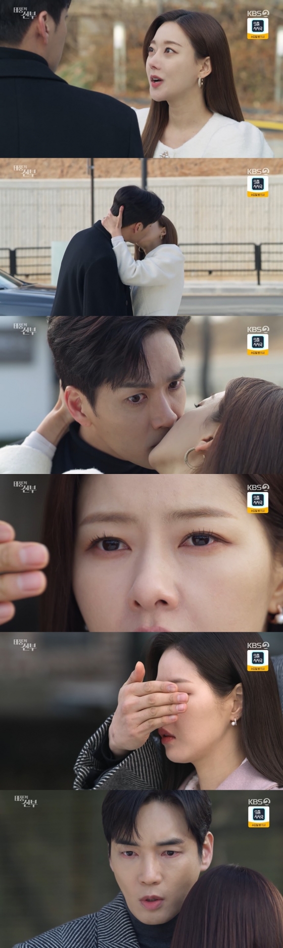 이후 강바다는 은서연이 보는 앞에서 박윤재와 입을 맞췄다. 두 사람의 입맞춤을 본 은서연은 충격에 멍하니 서 있었다. 은서연과 계약 결혼 한 르블랑 장남 강태풍(강지섭 분)은 은서연의 눈을 가린 후 몸을 돌려 껴안았다.