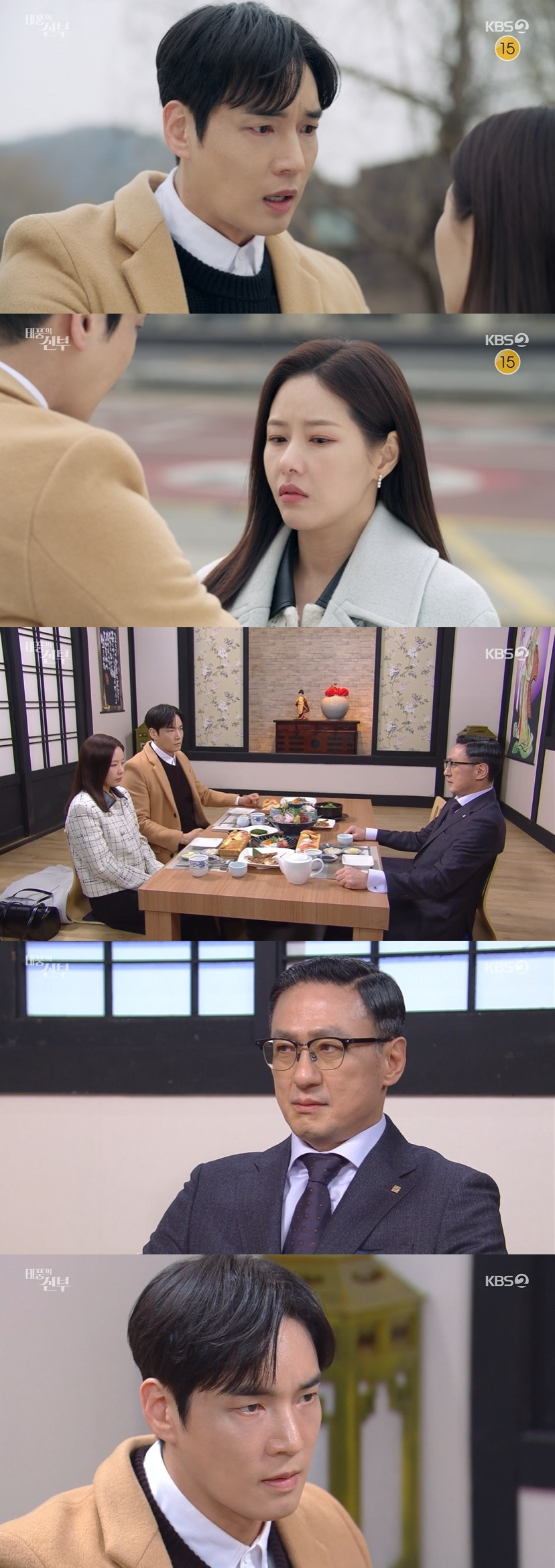 27일 오후 방송된 KBS 2TV 일일드라마 '태풍의 신부'에서는 르블랑 장남 강태풍(강지섭 분)이 아버지 강백산(손창민 분)을 혼자 만나러 가려는 은서연(박하나 분)을 말리는 장면이 담겼다.