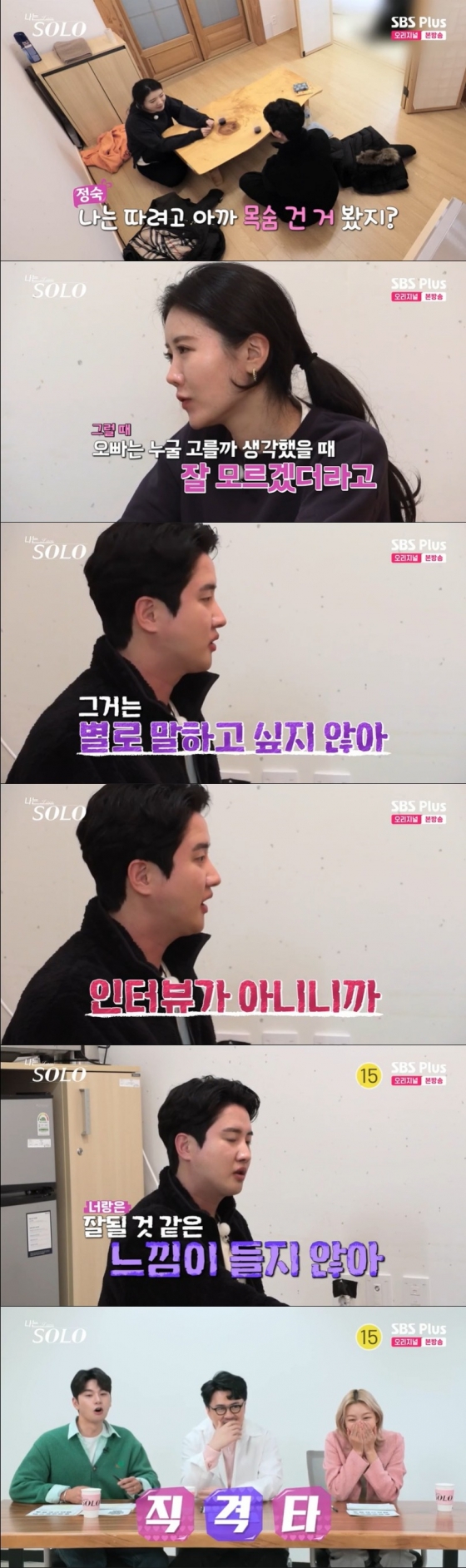 [이지현 스타뉴스 인턴 기자] '나는 SOLO(나는 솔로)' 13기 상철이 정숙의 마음을 단호하게 거절했다.