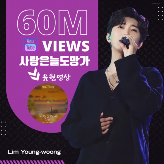 [문완식 스타뉴스 기자] 가수 임영웅의 '사랑은 늘 도망가' 음원 영상이 6000만 뷰 대기록을 달성했다.